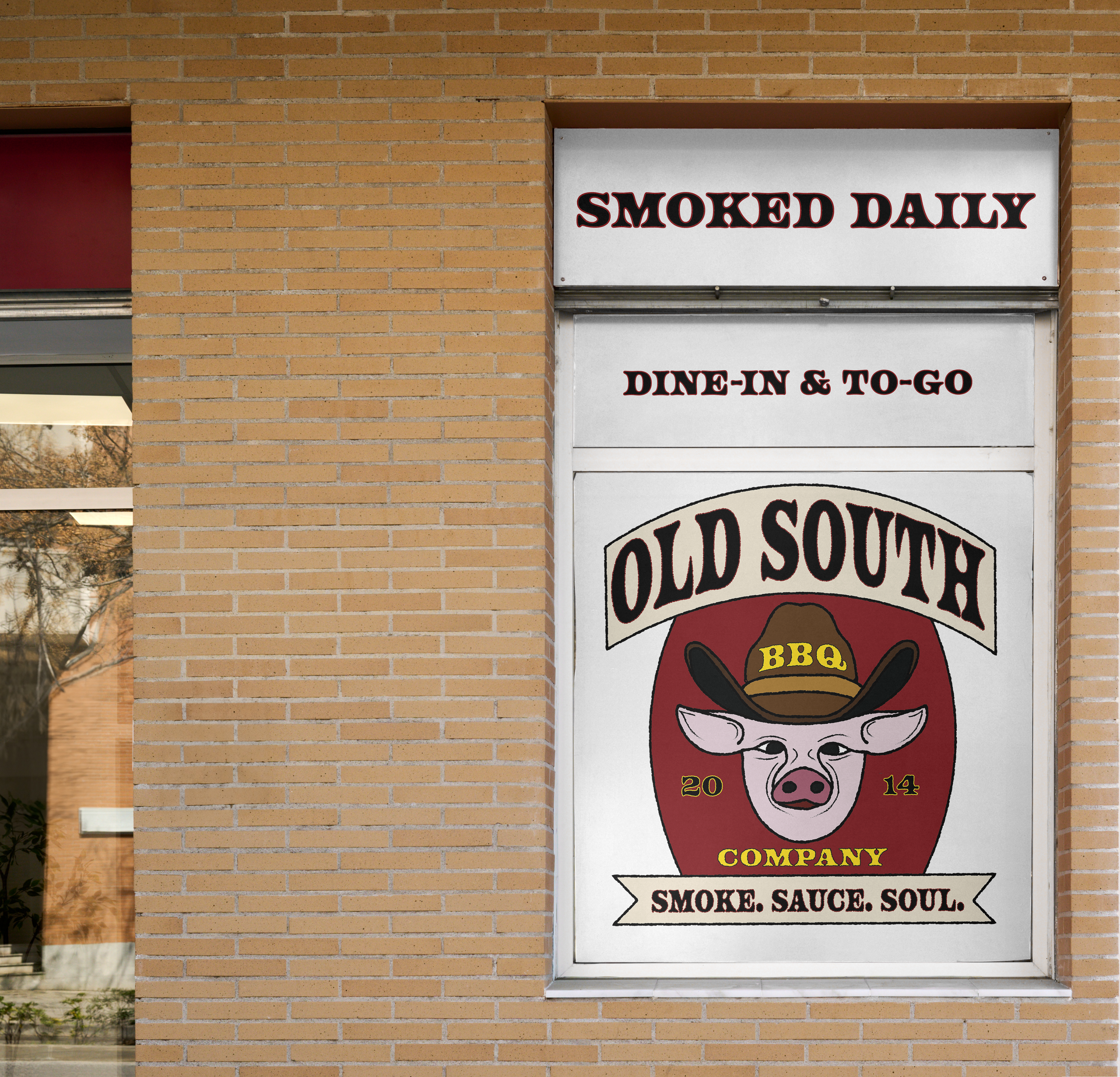 Storefront graphic redesign for Old South BBQ Company, refreshing the exterior visuals to create a stronger, more inviting brand presence.